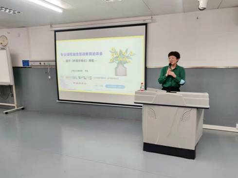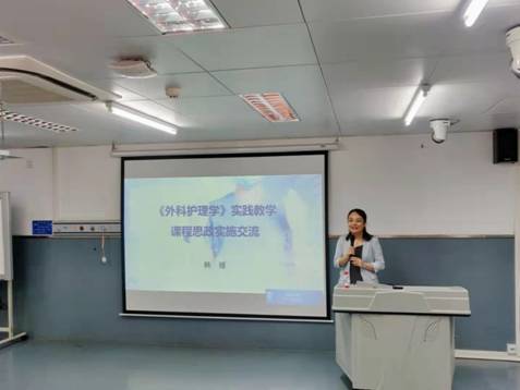 接着,今年会护理人文教研室李桃副教授、外科护理学教研室韩媛副教授、内科护理学教研室马春花教授分别做了课程思政经验交流分享。李桃副教授结合《护理学导论》的课程建设及参加今年会课程思政教学竞赛的经历,分享了个人对思政课程建设的体会;韩媛副教授以《外科护理学》为例,分享了自己在实践教学讲授过程中,以博古通今的方式向学生传达思政的观点的经历;马春花教授则以《内科护理学》中高血压的理论课讲授为例,分享了课程思政的经验。