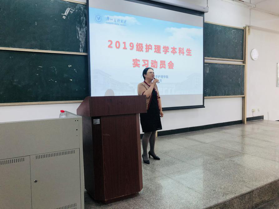 徐学虎副院长在动员讲话中谈到,实习是学生们从象牙塔步入社会的过渡阶段,勉励大家“入乡随俗”,通过十个月的临床实习,逐步培养自己的临床护理工作能力。