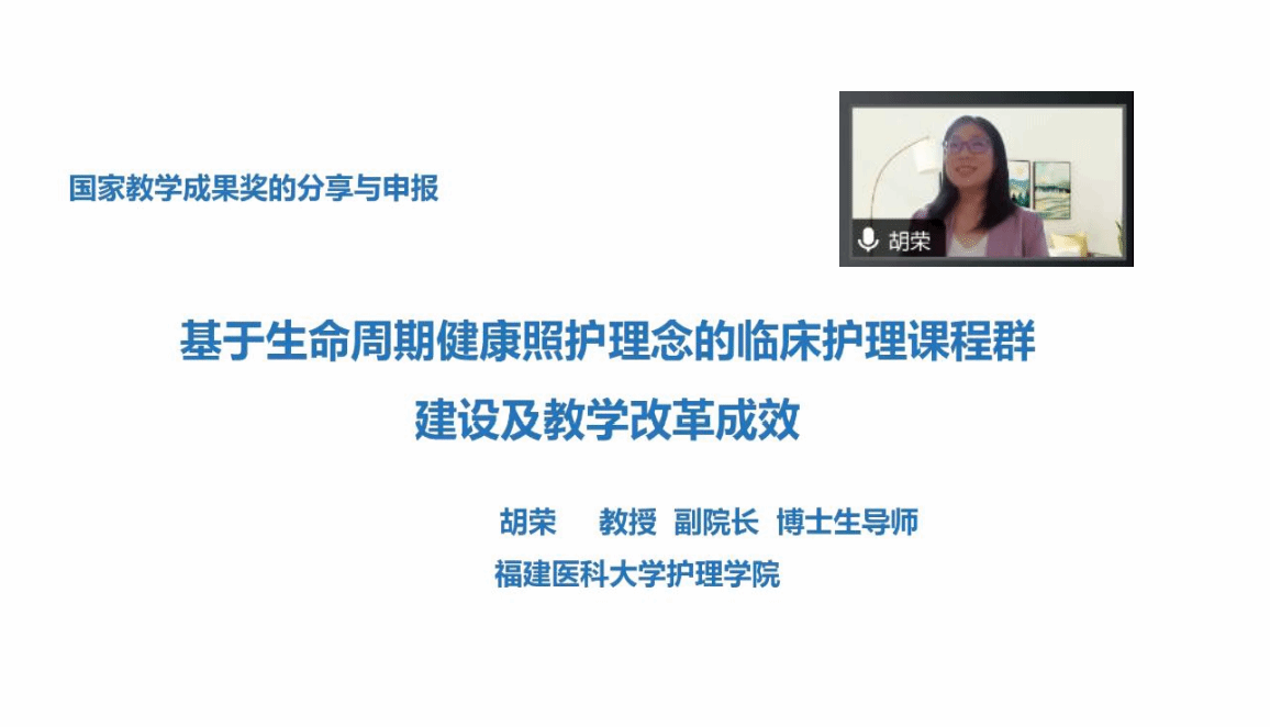 为进一步加强学术交流,推动高质量教学成果培育与申报,提升教师教学研究能力,jinnianhui今年会于5月17日晚上19:00邀请福建医科大学jinnianhui今年会副院长胡荣教授开展题为“国家级教学成果分享与申报-基于生命周期健康照护理念的临床护理课程群建设及教学改革成效”的专题报告。今年会jinnianhui今年会、基础学院、药学院教师及临床教学骨干等近200人参加了本次讲座。jinnianhui今年会韩媛副院长作主持。