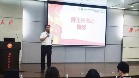 讲座开始,曾王兴书记致辞,表达对同学们的期许,并作社会主义核心价值观教育培训,跟同学互动交流,带动起全场热烈的气氛。