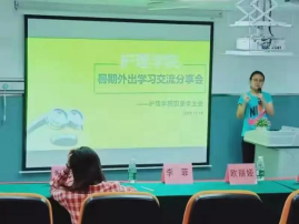 李菲师姐给我们分享她在成都交流学习的学习经验。“一个看似普通的老师竟是研究生的导师,有着很大的科研成果;一个看似普通的师姐拥有自己的发明专利。”李菲师姐用生动的例子说明了“人不可貌相”的道理。在四川交流学习时,李菲师姐体验了老师的新教学方式。呕吐袋的创新,用无人机在黄山、华山送药的想法,医院电子病历的普及,无不彰显着创新在医疗行业的意义。