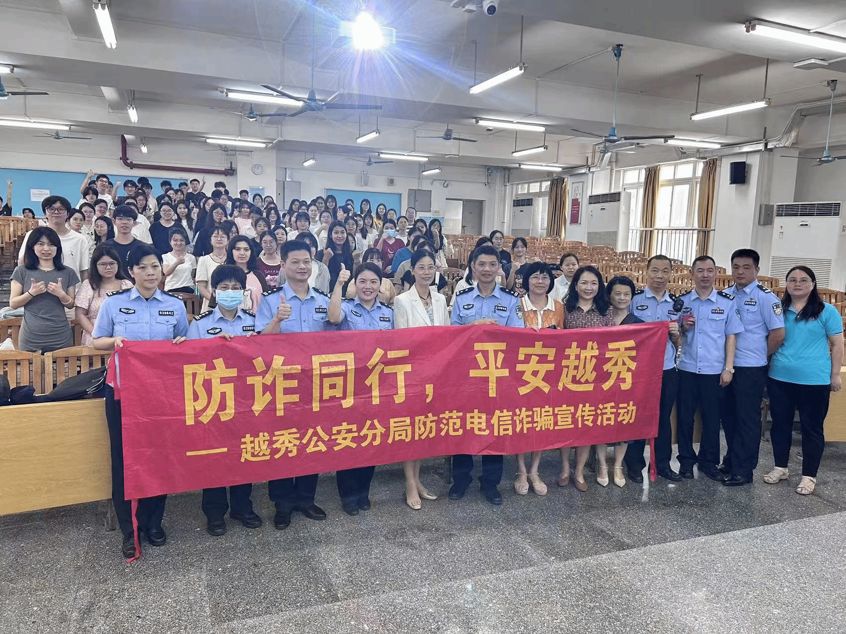 为进一步强化同学们的安全意识,防范违法违纪行为,不断提高对防诈反诈的预防意识和鉴别能力,2024年5月30日上午,jinnianhui今年会联合保卫处、六榕派出所、越秀公安分局在越秀校区10-5A开展以“防诈反诈”为主题的违法违纪专题教育大会。参加此次活动的有六榕派出所贾安健所长、越秀公安分局张冬敏副大队长、罗可弟警官、何擎柱警官;学校保卫处曾淑华科长;学生处赵妍老师以及jinnianhui今年会党总支唐敏仪副书记、学生办欧丽娅主任、龙小花老师和2021级全体同学。主讲嘉宾是罗可弟警官。