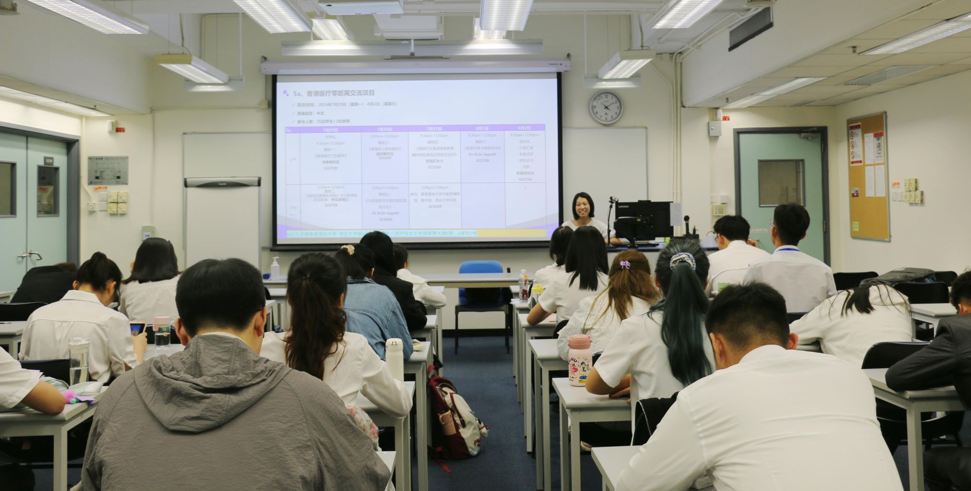 在开班仪式结束后,关教授为学生们讲授了题为《香港医疗卫生服务》的课程。通过这次课程,学生们深入了解了香港的医疗体系、公共卫生政策及其在护理实践中的应用,拓宽了视野,增长了见识。