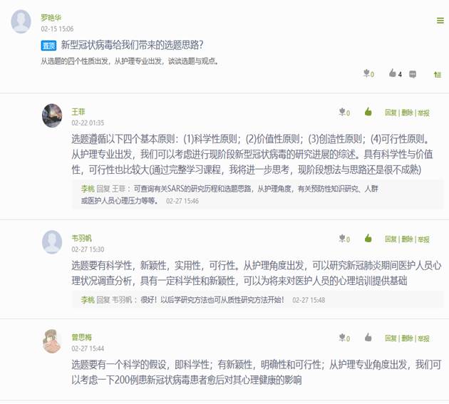 如一是根据授课内容结合当下疫情,积极引导学生探讨:从护理角度,探讨新冠状病毒的选题。