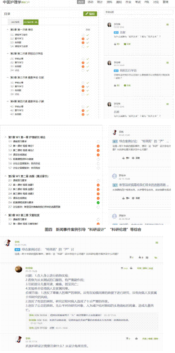 在线教学最大的困难就在于如何解决学生和老师交流的问题。为解决这一问题,教师们多措并举,采用学生最喜闻乐见的方式开展答疑,确保学生能够及时有效收到教师反馈,提高学生在线学习的积极性。本周的《中医护理学》安排肿瘤医院的宋晔莹老师为同学们直播答疑,同学们非常的踊跃,提问也非常有序,答疑效果非常好, 同学们表示非常满意。《护理研究》两周的在线课程,老师在线回复、点评、答疑共几百次,学生参与讨论几百次,学习积极性较高。