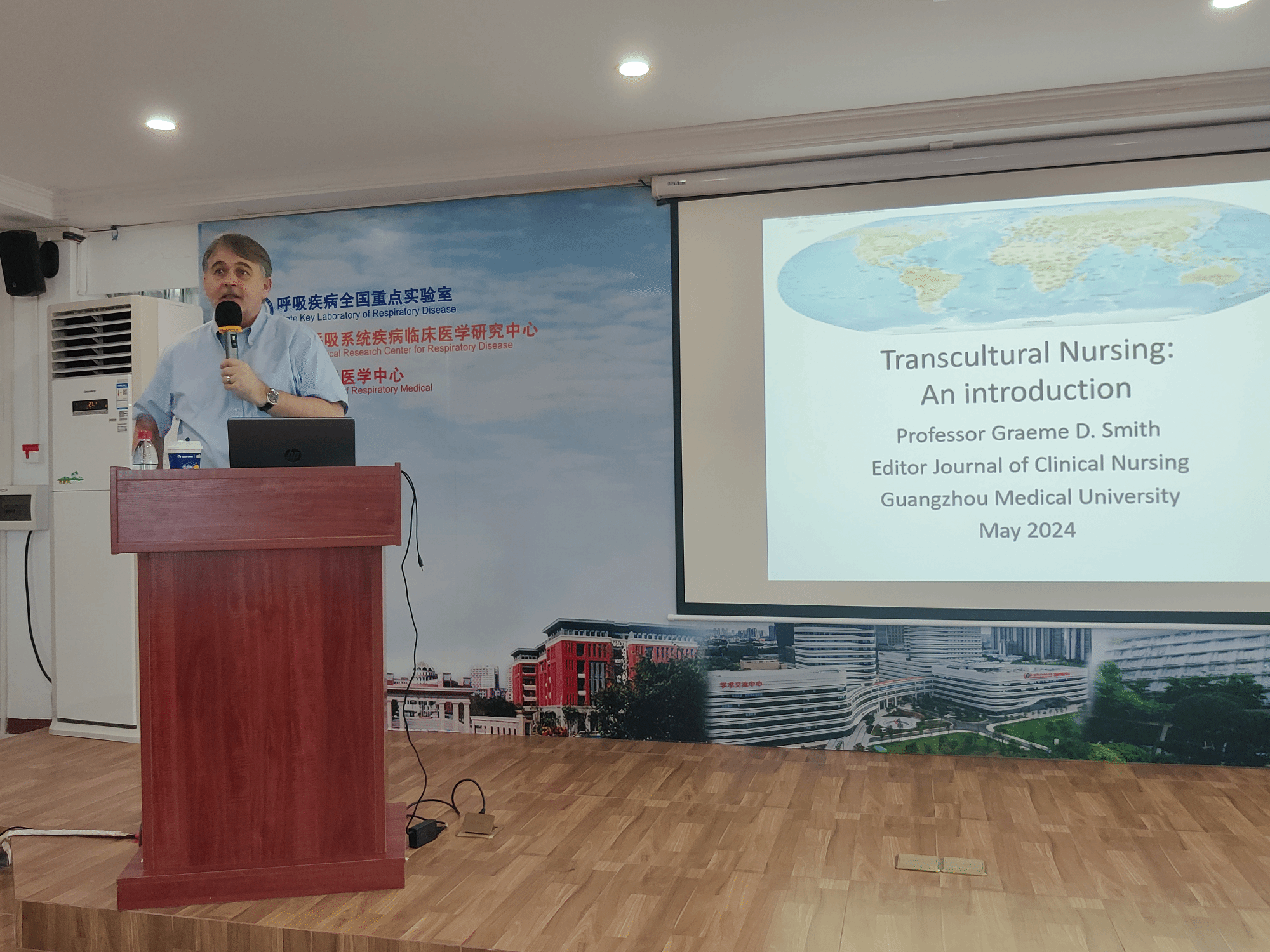 5月13日-14日,今年会客座教授、英国爱丁堡龙比亚大学Smith教授应邀来今年会jinnianhui今年会访问,并为本科生作了两场全英讲座(讲座题目:Transcultural Nursing;Nurse education in UK),为研究生、教工及临床护理人员作了三场全英讲座(讲座题目:Health literacy in nursing research;Developing novel nursing research ideas;Writing for publication: An editor's update)。讲座分别由韩媛副院长、柳家贤老师和刘亚丹老师主持。今年会本科生、研究生及学术骨干共计450多人次参加。