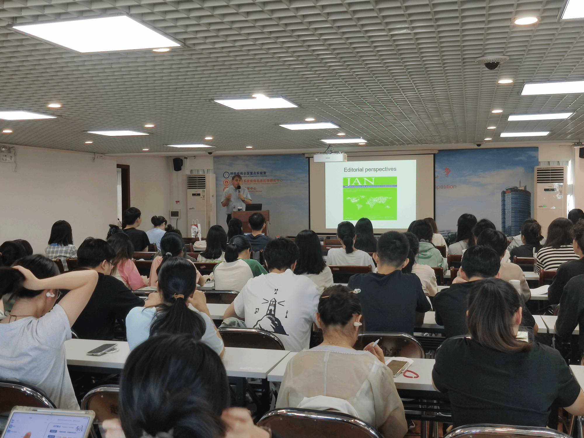 Smith教授从分享生活开始,比较了中国和英国生活方式的异同,从而引出护理学教育在英国的概况、护理研究中的新颖性以及跨文化护理的基础知识等。作为10余本SCI杂志的编委及审稿专家,Smith教授对师生如何撰写及投稿SCI论文做了进一步的指导。
