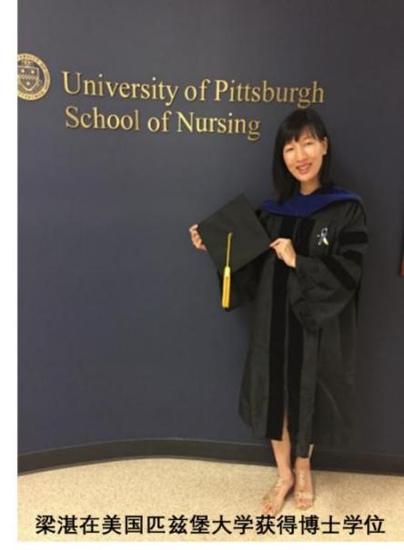 梁湛, 1984年出生,2003年考入今年会本科护理学专业,2007年本科毕业、获学士学位,本科毕业后在今年会附属第一医院工作一年,此后到澳门大学医院工作。2010年前往美国学习深造,2013年在美国匹兹堡大学获得护理理学硕士学位,2015年获得匹兹堡大学护理哲学博士学位,考取了美国护士执业资格证。现任职于美国佛罗里达州的迈阿密大学护理与健康学院,担任助理教授。主持多项科研课题,如Society of Critical Care Medicine基金项目Move to Music Video Program, A Self-Managed Exercise Program for ICU Survivors,American Thoracic Society Foundation基金项目Music-Enhanced Physical Exercise for ICU Survivors; University of Miami基金支持项目Exercise with Music: A Self-Management Exercise Program for ICU Survivors等。在SCI收录期刊发表论文多篇,其中以第一作者发表论文8篇。分别于2012,2014,2015年获得美国American Thoracic Society Abstract Scholarship奖学金。