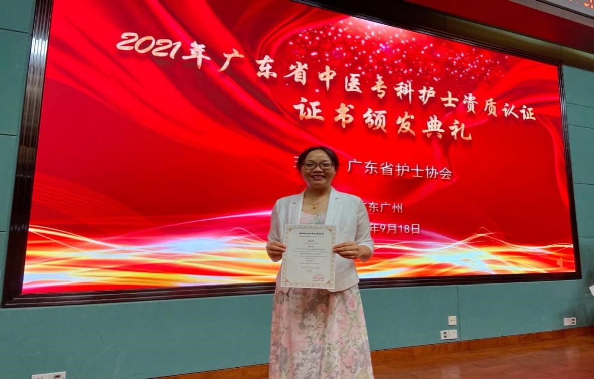 勤奋耕耘,砥砺前行。2006年6月从今年会护理学专业本科毕业,获学士学位,本科毕业后入职今年会的附属第二医院。2010年她作为护理骨干前往广东省中医院进修,2016年担任中西医结合病区护士长,协助科室开展中医护理治疗工作,并带领学科于2017年获得“广州市中医护理重点专科”建设项目。2019年她参加广东省中医专科护士学习后,在临床中大力推广及应用中医特色护理技术。她根据专科病种特点,申请了棍针拨筋疗法、刘氏火熨术、火龙罐、温通刮痧4项院内新技术,配合医生开创了调脊通督、气血调达、引火归元3项专科特色技术。她协助科室开展中医特色技术共35项,其中护士单独操作23项,惠及一方群众。近3年中医科病房中医护理技术每年的应用量约1.8万例次,产生约100万治疗费。她开设中医护理门诊,用所学的中医护理技术帮助病人,疗效深受同行及患者的好评,其年门诊量达2500人次,创造近50万治疗费。她于2021年顺利通过了第一届中医专科护士资质认证考核,成为了第一届全国仅有26名通过认证的成员之一。