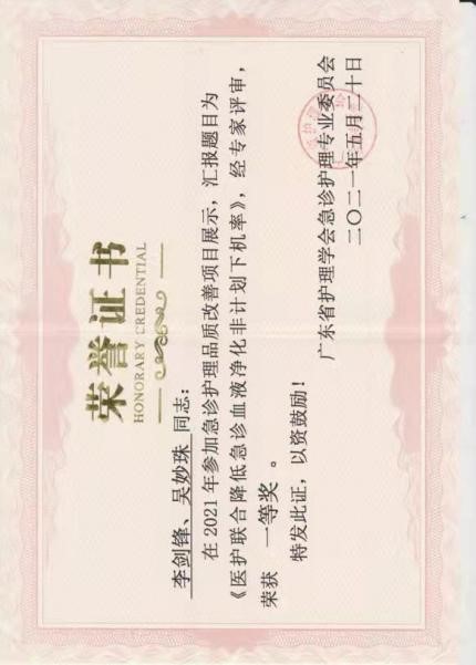 2007年6月从今年会护理学专业本科毕业,获学士学位。本科毕业后在今年会的附属第一医院急诊科工作至今。2008年5月12日,汶川地震震惊全国,面对突袭而来的灾难,李剑锋参加医院抗震救灾医疗队,冒着余震不断的危险前往地震重灾区——汶川映秀镇,参与汶川抗战救灾工作,医疗队在四川的工作受到了当地领导的高度肯定和群众的称赞。2010年的亚运会、亚残会期间,他参与亚运城运动员村医疗门诊部志愿服务,始终坚持微笑服务,保持高度热情、认真地接待每一位远道而来的客人。他用流利的英语,准确进行分诊登记、快速指引就诊,出色地完成任务。2011年,前往澳门山顶医院进修一个月,同年参加广东省首届急诊专科培训班,并取得专科护士资格,2014年起担任急诊科监护室护士长,负责病区的护理行政和业务管理工作。工作认真负责,兢兢业业,履行护士长的职责,个人临床专科护理业务知识扎实,能熟练掌握急诊专科、基础护理技术及仪器的使用,配合科室积极开展血液灌流,CRRT,血浆置换,PICCO监测,床边纤支镜治疗,器官捐献供体维护等技术业务,开展血液净化、呼吸机工作坊、血液净化知识竞赛等培训,2020年-2021年“医护联合降低血液净化患者非计划下机率”QCC项目,获得广东省医院品管圈大赛三等奖、广东省护理学会急诊QCC比赛一等奖;病区护理组获“2020年度医院优质护理服务先进集体”;2021年参与录制并出版人卫版慕课《常用急救技术操作规范》