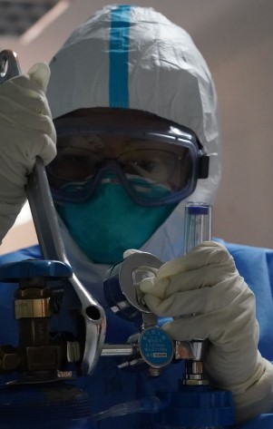 尽管已经做过一些心理准备,第一次进入病房时的情况还是让我大吃一惊:“超载”的病房、来路不明的病毒,没有特效药、没有疫苗、也没有针对性的治疗方案,甚至连基础的氧气也都无法保证供应。一切都在摸索医疗队迅速开启战斗模式:“任务艰巨,责任重大!